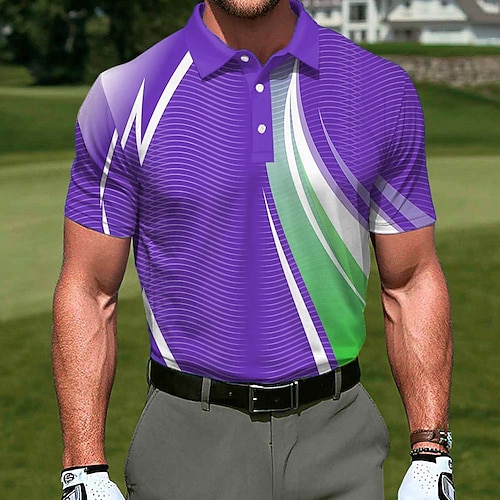 Per uomo Geometrico Golf Polo Sportivi Manica Corta Magliette polo Camicie con Colletto Casual Athleisure Bottoni Estate Blu Rosso Viola