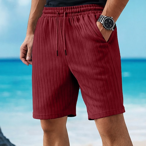Per uomo Nido d'ape Shorts Pantaloncini Estivi Shorts da Spiaggia Pantaloncini casual Coulisse Elastico in vita Tinta unica Comodità Lunghezza al ginocchio Quotidiano All'aperto Ferie Vacanza Moda