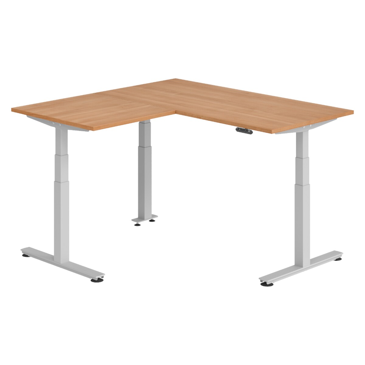 bümö Eckschreibtisch elektrisch höhenverstellbar L-Form: 180 x 200 cm in Nussbaum, Gestell silber - Stehschreibtisch mit Memory-Steuerung,