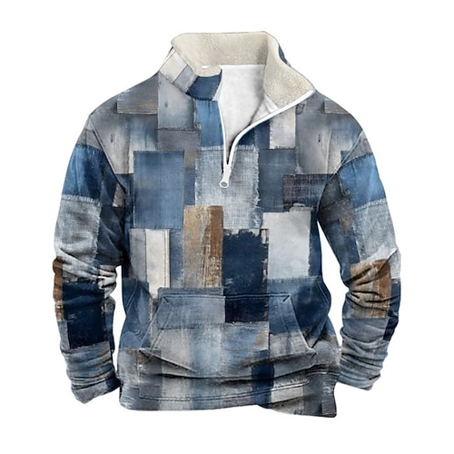 Per uomo Blocco di colori Stampa Felpa con cerniera a un quarto Felpa per le feste Felpe Manica Lunga Felpa Mezza zip Vintage Retrò Stampa Ferie Uscire Festival Stampato Autunno Inverno