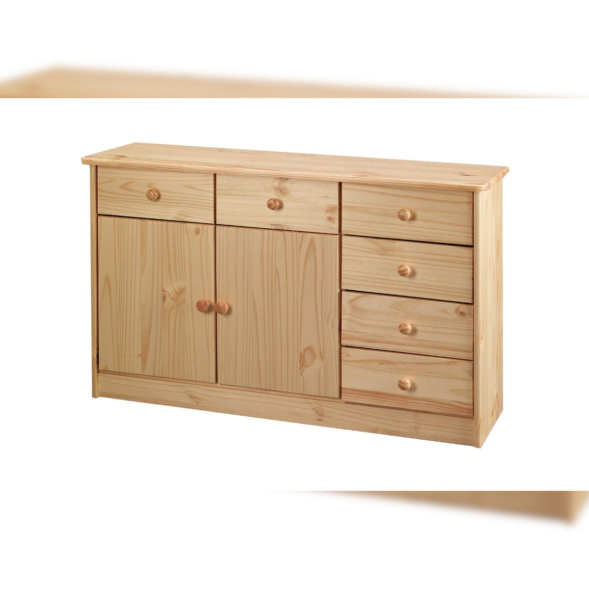 SIT Möbel Kommode | 2 Türen, 6 Schubladen | Kiefer massiv | Natur, lackiert | B 118 x T 35 x H 75 cm | 19001-27 | Serie KOMMODE