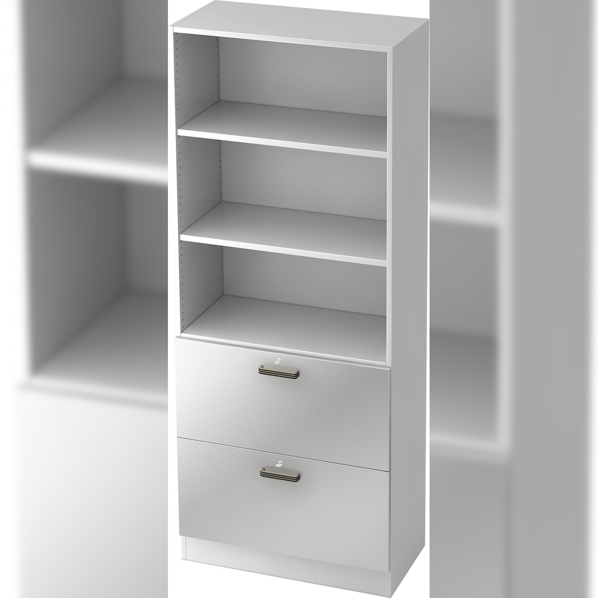 bümö office Aktenschrank mit Hängeregister-Schubladen abschließbar, Büroschrank Holz, 80cm breit in Weiß/Silber - Hängeregistratur für Hängeordner,