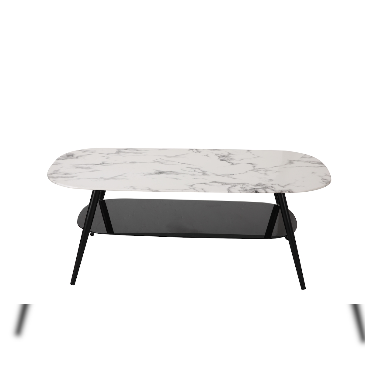 Möbilia Couchtisch rechteckig | 1 Ablageboden | Glasplatte Marmoroptik weiß | Metallgestell schwarz | B120xT60xH45 cm | 28020009 | Serie COUCHTISCH