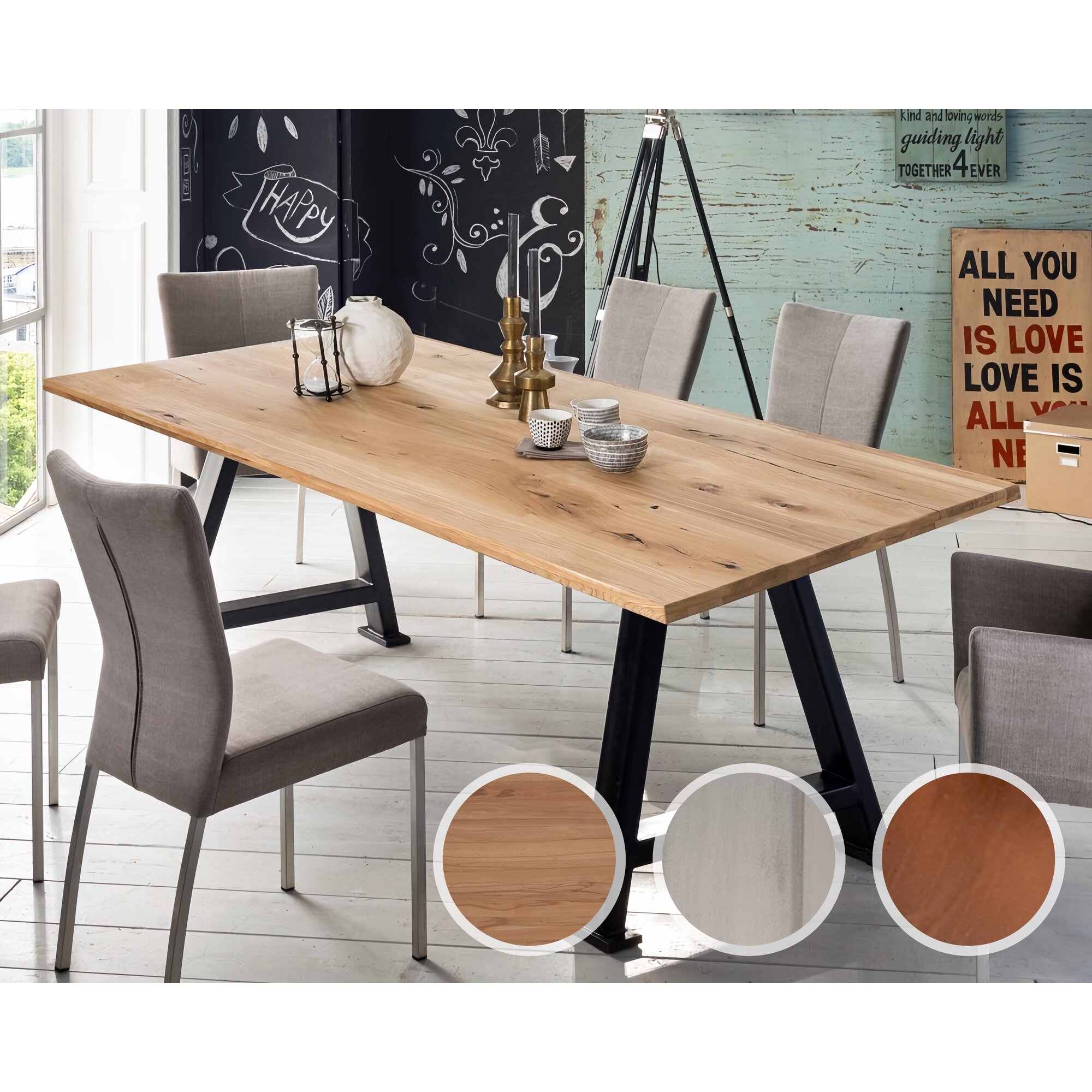 SIT Tops & Tables »Virginia« Wildeiche Massivholz Esstisch 240x100 cm / Eisen antikbraun