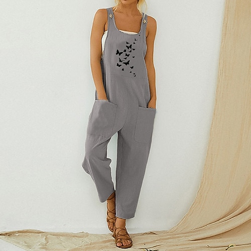 Per donna Normale Tuta Streetwear Tinta unica Senza maniche Senza maniche Squadrata Bottoni Tasche Strada Giornaliero Standard Rosso Cachi Grigio Estate