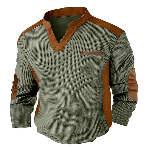 Per uomo Maglietta Waffle Camicie da uomo con toppe sui gomiti Manica Lunga Scollo a V Primavera Autunno Tutte le stagioni Tinta unica Testurizzato Moda Essenziale Casual Tasche Casuale Streetwear