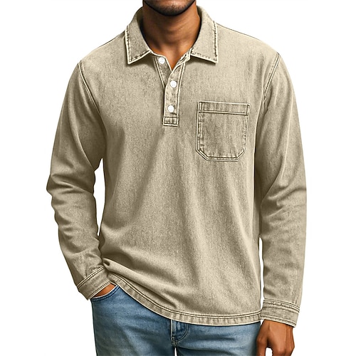 Per uomo Maglia da golf Polo da Golf Lavoro Casuale Bavero Manica Lunga Essenziale Moderno Semplice Tasca Bottoni Primavera Autunno Vestibilità regolare Verde scuro Nero Verde Chiaro Blu scuro Rosa