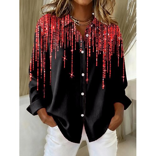 Per donna Blusa Tinta unica Elegante Casual Manica Lunga Colletto a Camicia Top Regolari Quotidiano Paillettes Bottoni Verde salvia Nero Bianco Champagne Rosso Primavera Autunno Inverno
