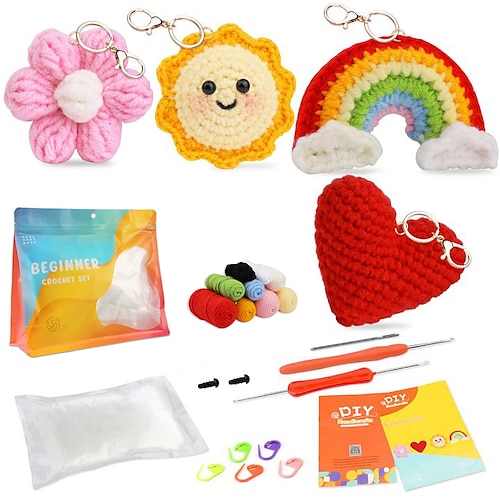 Kit Per Principianti Di Crochet Con Video Tutorial Passo-Passo Kit Di Lavoro A Maglia Per Principianti Borsa In Materiale Di Lana Lavorata A Mano A Forma Di Sole Arcobaleno Stella Luna Pendente Amore