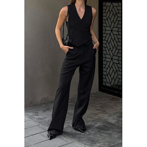 Per donna Attivo Essenziale Misto cotone Set ispirati al lino Set da due pezzi Senza Maniche Scollo a V Tinta unica Ferie Casual Quotidiano Nero Beige Estate Vestibilità regolare