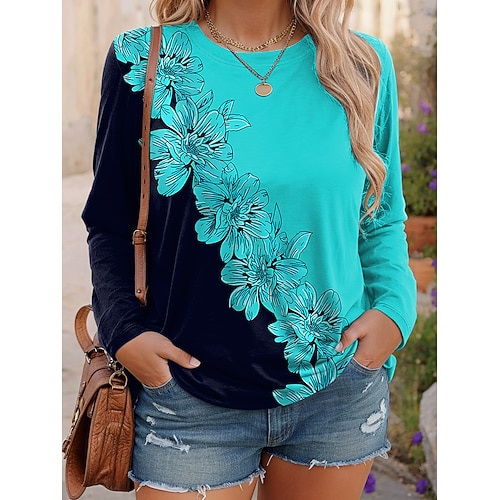 maglietta da donna moderna casual stampa manica lunga top regolari scollo a V quotidiano rosso blu marrone azzurro autunno inverno