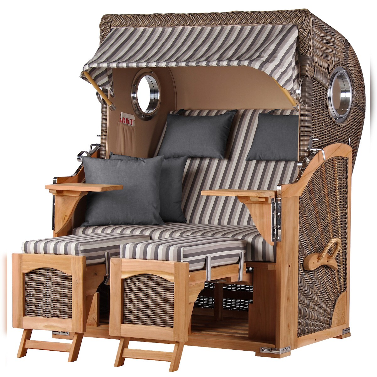 Mr. Deko Strandkorb - bene living - Ammersee Grande XL Teak Bullauge - PE grau - Modell 529 - 2,5-Sitzer inkl. Liftersystem