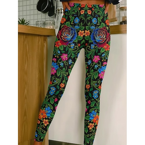Per donna Leggings Leggings comodi Vacanza Vintage Casual Lunghezza intera Vita Alta Grafico Rosa Stampa Comodità Confortevole Elasticizzato Casuale Quotidiano Vacanza Verde scuro Verde Primavera