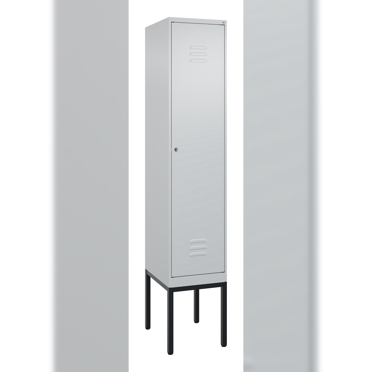 C+P Spind Classic PLUS, Füßen, 1 Abteil, HxBxT 195x40x50cm, Sicherheitsdrehriegel, Hellgrau/Rot von PROREGAL