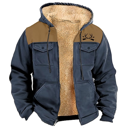 Per uomo Volpe Pile Felpa con Cappuccio Giacca di pelle Felpa Moda Cool Quotidiano Vintage Retrò Con Cappuccio All'aperto Regalo Caccia Blu Marrone Marrone 2 Cerniera Tasca Autunno Inverno progettista