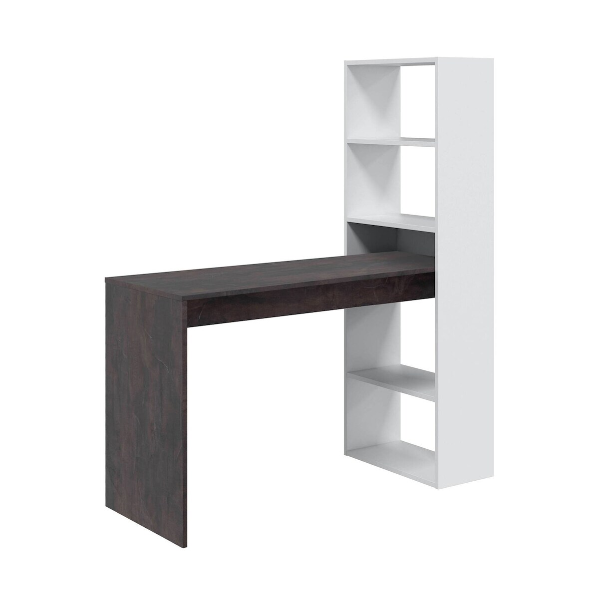 Dmora Schreibtisch Denton, Wendeschreibtisch mit Bücherregal mit 5 Böden, Studier- oder Bürotisch für PC-Buchhalter, 120x53h144 cm, Weiß und Oxid