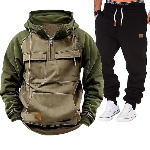 Per uomo Felpa con cappuccio Tuta Da Ginnastica Tuta da ginnastica Nero Bianco Verde militare Cachi Grigio scuro Con cappuccio Liscio A cordoncino 2 pezzi Tasca frontale Sportivo Giornaliero Per
