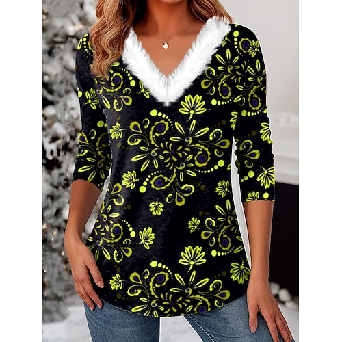 Per donna Tunica Ombre Floreale Grafico Vintage Elegante Classico Manica Lunga Scollo a V Top Regolari Quotidiano Patchwork Stampato Giallo Rosso Blu Viola Verde Autunno Inverno