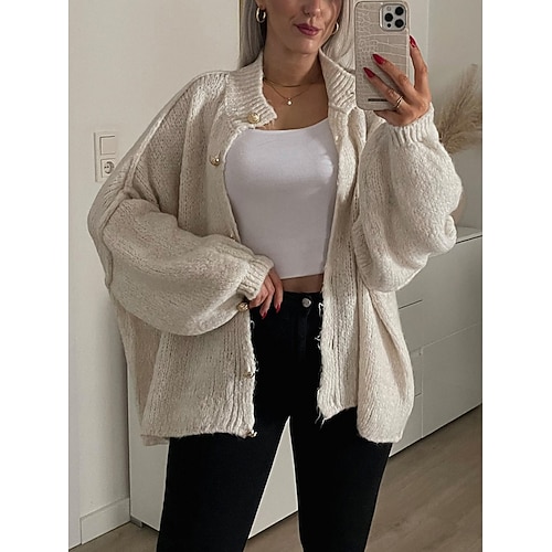 Per donna Cardigan Quotidiano Elegante Essenziale Uncinetto Girocollo Bottoni Lavorato a maglia Manica Lunga Top Regolari Maglia All'aperto Quotidiano Nero Blu marino Autunno Inverno