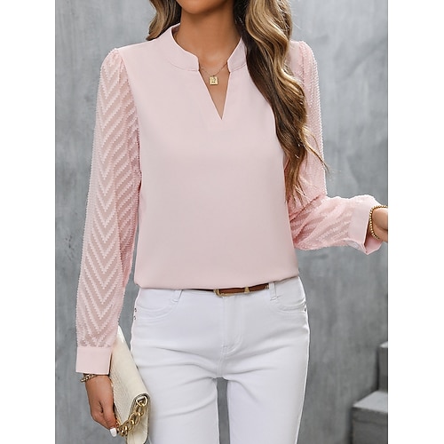 Per donna Blusa Tinta unica Elegante Quotidiano Casual Manica Lunga Scollo a V Top Regolari Quotidiano Patchwork Rete Nero Bianco Rosa Estate Primavera Autunno