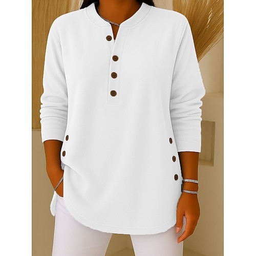 Per donna Maglietta Tinta unica Moda Elegante Classico Manica Lunga Scollo a V Top Regolari Quotidiano Uscire Weekend Bottoni Blu Nero Bianco Rosa Vino Primavera Autunno