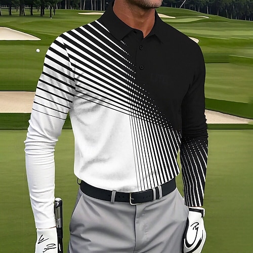 Per uomo Geometrico Golf Polo Polo Sportivi Manica Lunga Magliette polo Bavero Casual Athleisure Abbigliamento quotidiano Stampa 3D Bottoni Primavera Autunno Inverno Bianco Blu Viola