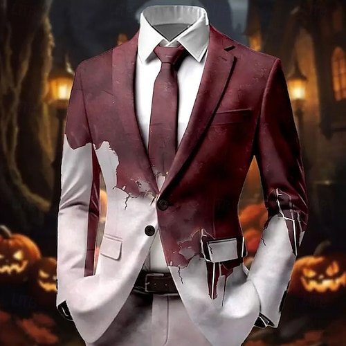 Giacca Blazer per uomini Casual da Strada Quotidiana Autunno Inverno 100% Poliestere Gradiente Macchie di Sangue 3D Stampa Bottoni Termico Caldo Confortevole Blazer Singolo Petto Rosso Viola Verde