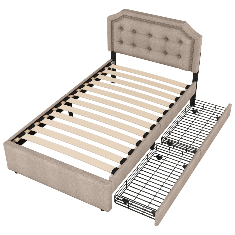 Letto per bambini con 2 cassetti in lino 90x200 cm, beige
