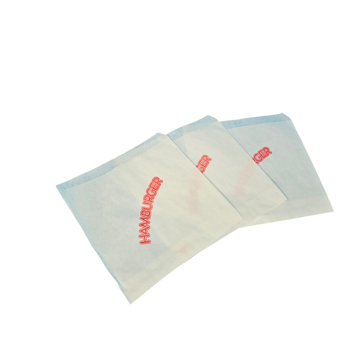 2000 Hamburgertaschen Snacktüten 16x16cm weiß mit "Hamburger" Aufdruck