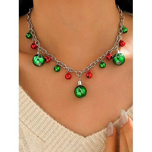 Collana natalizia da donna in lega con campanellini rossi e verdi, ornamento a forma di fiocco di neve, perfetta per la moda delle feste e come regalo festivo