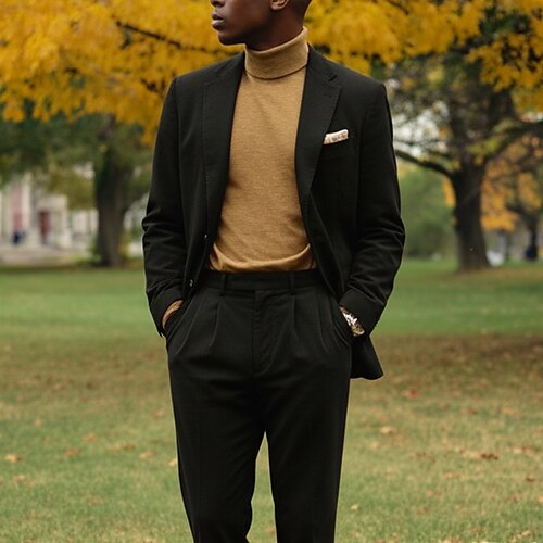 Uomo Affari Casuale Completi in Tweed Bavero classico Nero Borgogna Quotidiano Casual Tinta unita Vestibilità su misura 2 pezzi Monopetto Due Bottoni