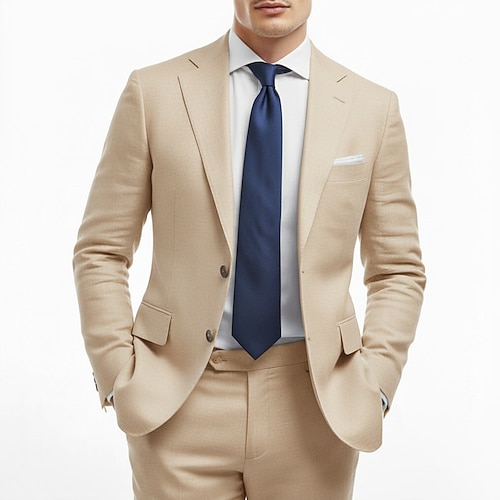 Uomo Casuale Affari Completi in Lino Bavero classico Nero Rosa Quotidiano Affari Tinta unita Vestibilità su misura 2 pezzi Monopetto Due Bottoni