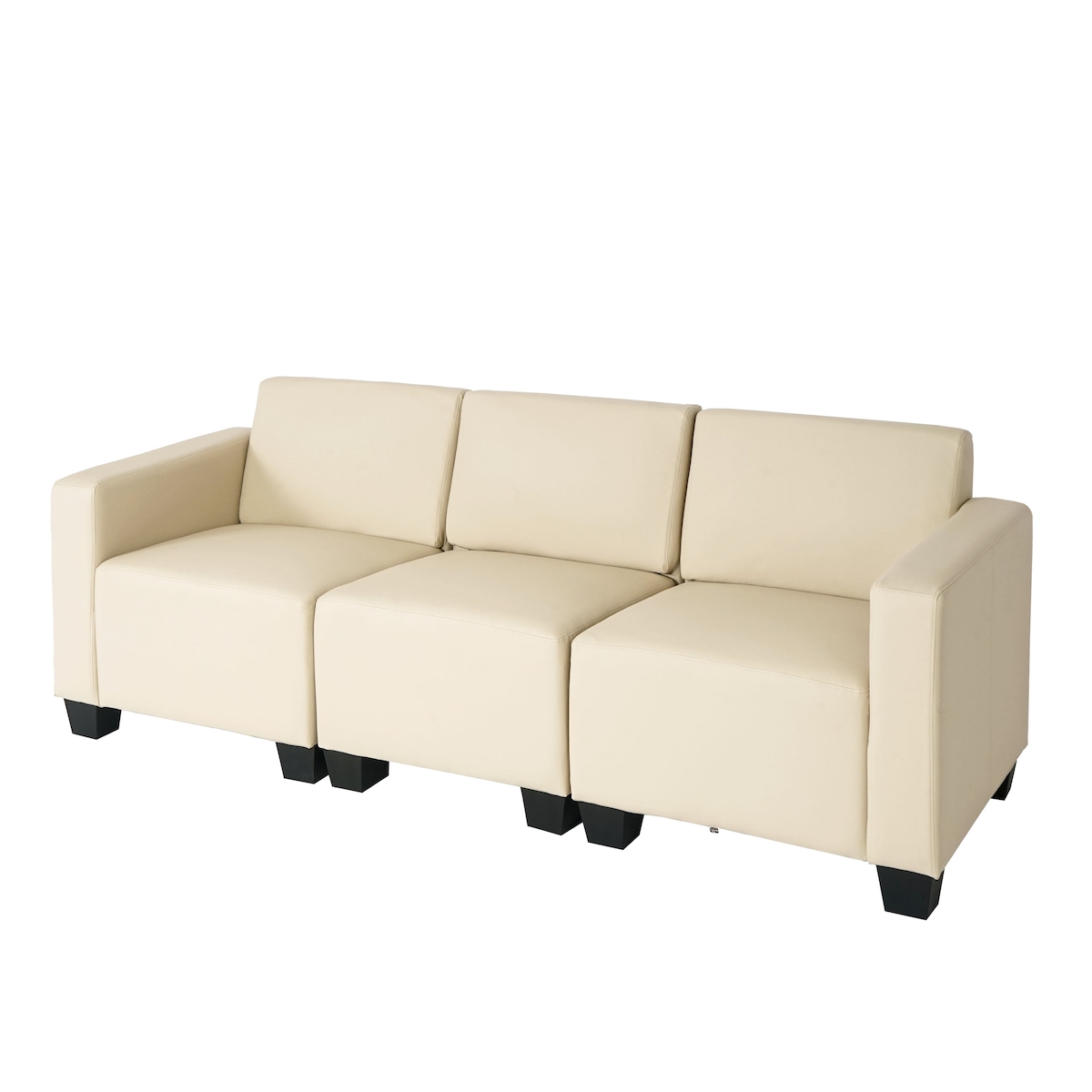 Mendler Modular 3-Sitzer Sofa Couch Lyon, Kunstleder ~ creme