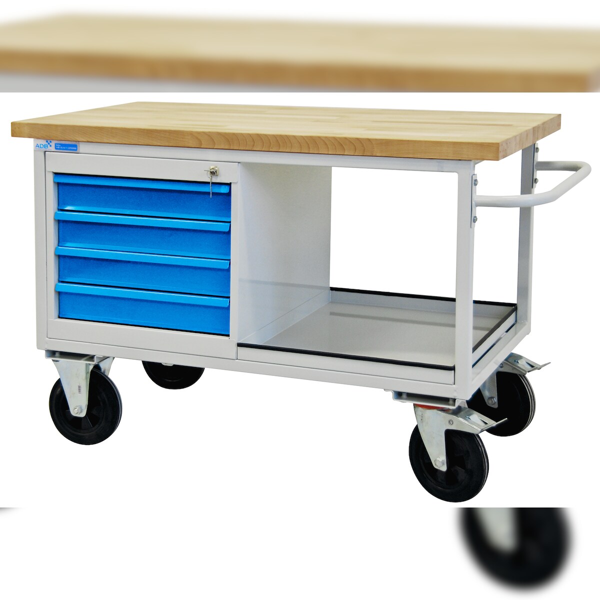 kaiserkraft Mobile Lager- und Regalleiter, mit 2 Handläufen und Rollen, 9 Stufen inkl. Plattform
