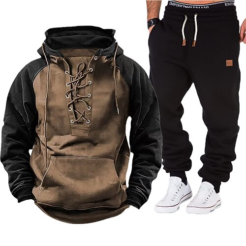 Per uomo Felpa con cappuccio Tuta da Ginnastica Felpa con cappuccio e pantaloni Impostato Felpa con Cappuccio Quotidiano All'aperto Vacanza Abbigliamento quotidiano Coulisse Patchwork Tasca Blocco di