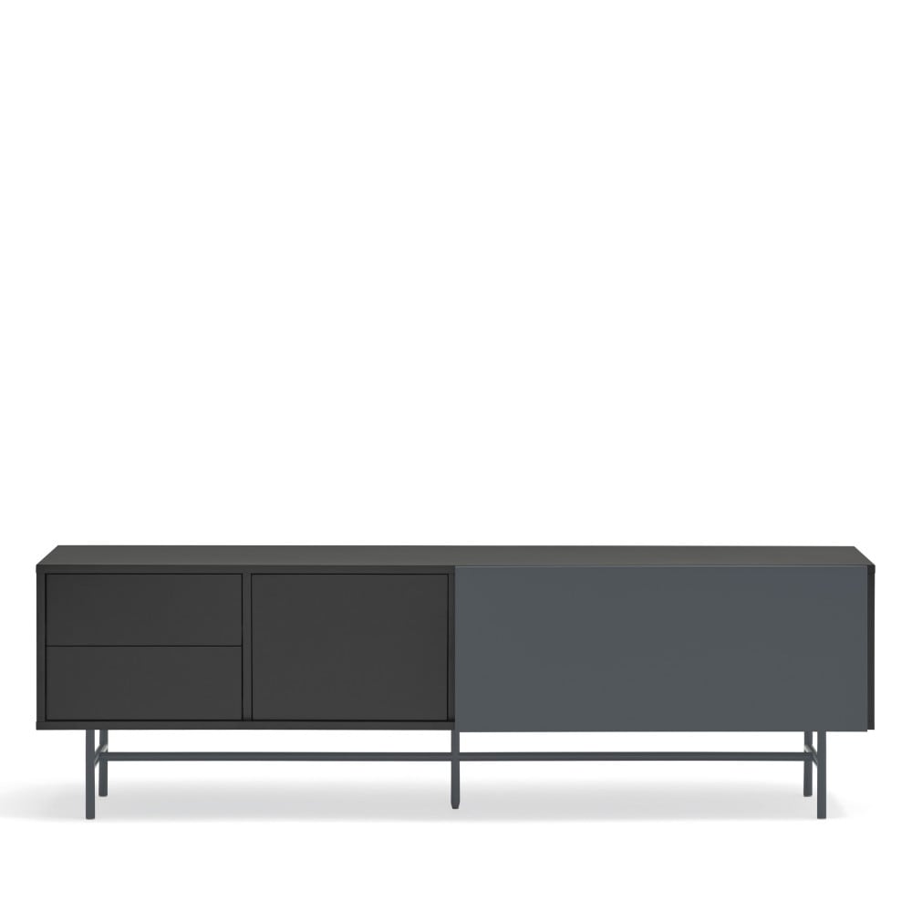 Meuble TV avec porte coulissante en bois L180 cm - Gris et noir
