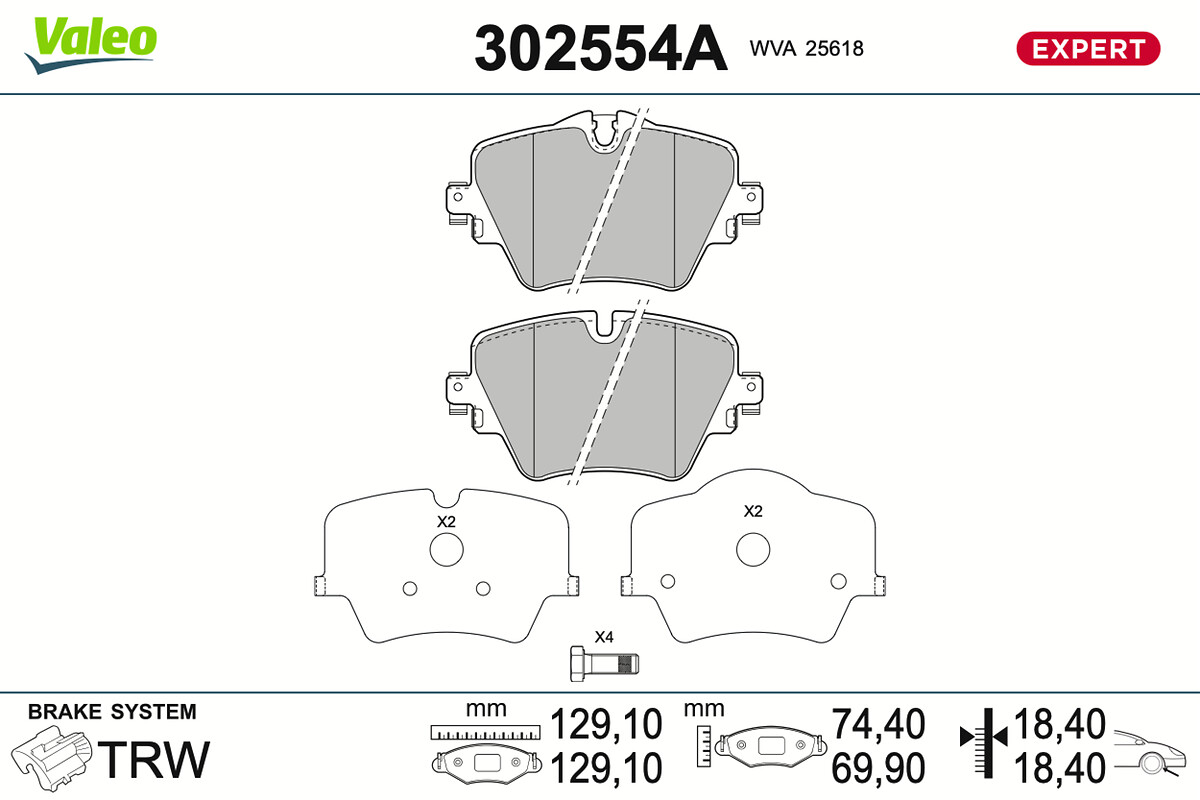 VALEO Bremsbelagsatz, Scheibenbremse 302554A vorne rechts links für ZINORO MINI COWIN TOYOTA BMW (BRILLIANCE) 34106860019 34106884492 04465-WAA02