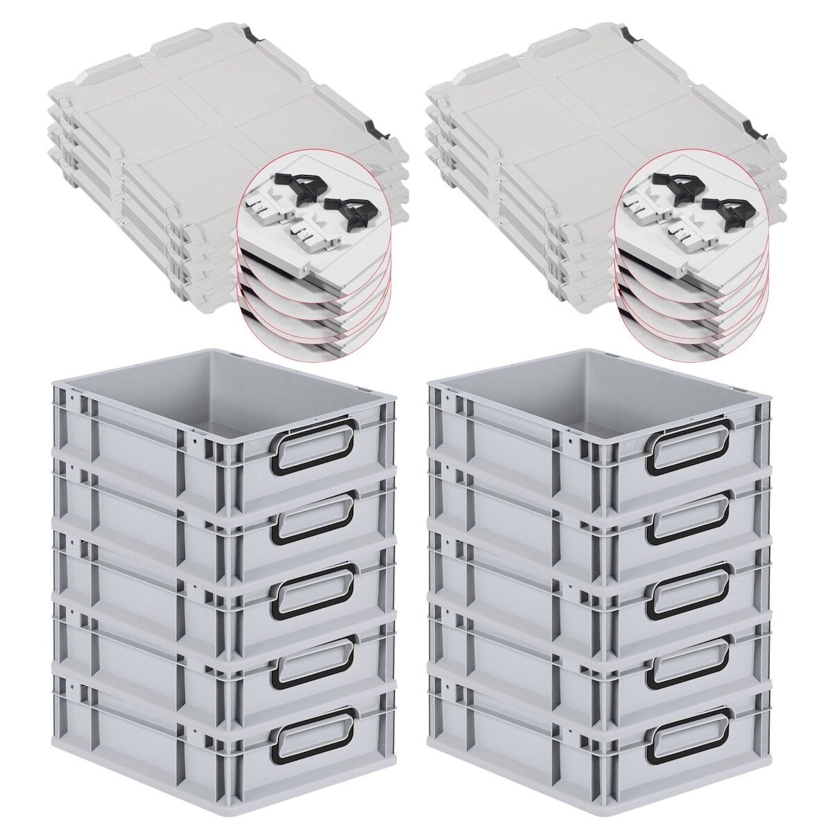 PROREGAL SuperSparSet 10x Eurobox NextGen Color mit Scharnierdeckel & Verschlüssen, HxBxT 12x30x40cm, 11L, Grau, Griffe schwarz zu, Eurobehälter