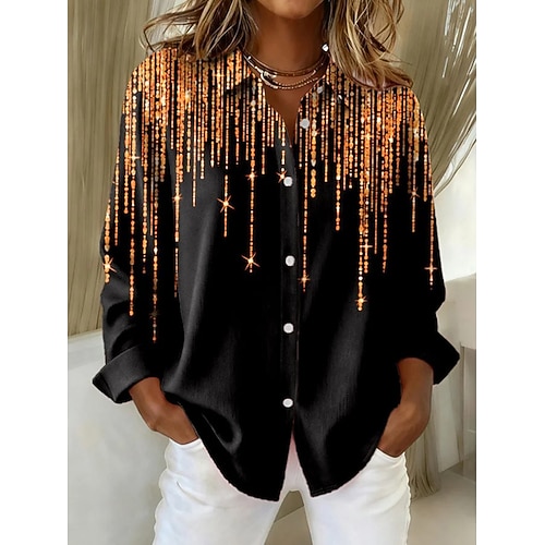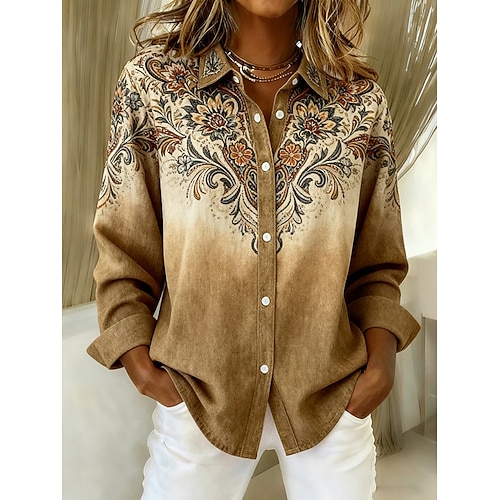 Per donna Camicia Blusa Grafico Geometrico Astratto Vintage Elegante Moderno Manica Lunga Colletto a Camicia Top Regolari Quotidiano Patchwork Bottoni Stampato Blu Marrone Verde Cachi Autunno Inverno