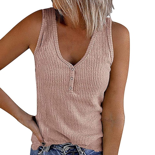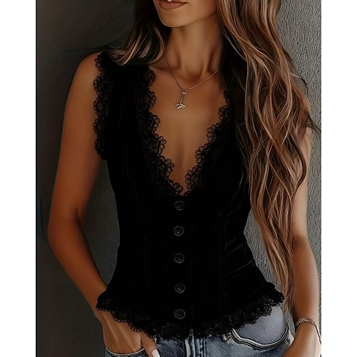 Per donna Blusa Top corto avvolgente Top Eleganti Canotta a canotta Tinta unica Semplice Elegante Vintage Signore Senza Maniche Scollo a V Top Regolari Lavoro Quotidiano Ferie Arricciato Bottoni Blu