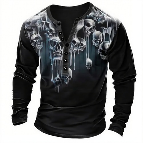 t-shirt uomo grafica teschio camicia henley t-shirt maniche lunghe vintage designer elegante all'aperto casual autunno inverno primavera ed estate nera blu henley henley t-shirt