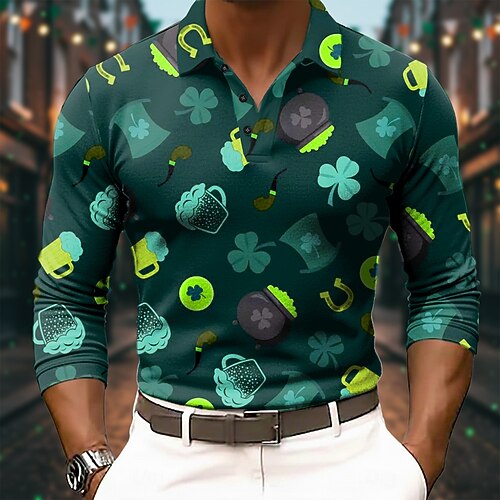 Per uomo A Pois Golf Polo Polo Sportivi Manica Lunga Magliette polo Bavero Business Casual Athleisure Abbigliamento quotidiano Stampa 3D Bottoni Primavera Autunno Inverno Nero Rosso Blu