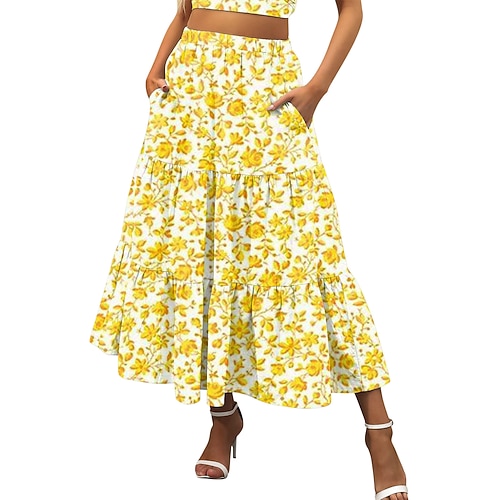 Per donna Gonna Linea A Altalena a dondolo Maxi Gonne Stampa Floreale Per eventi Da mare Estate Cotone Informale Boho Giallo Rosa Rosso Blu marino