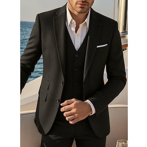Uomo Casuale Completi Bavero classico Nero Blu marino Abito Tinta unita Vestibilità su misura 3 pezzi