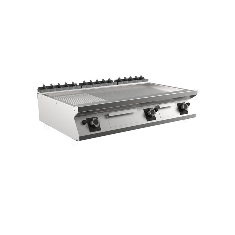 Mareno M1-700 Gas-Grillplatte mit 2/3 glatter und 1/3 gerippter Mattchromplatte, 120cm