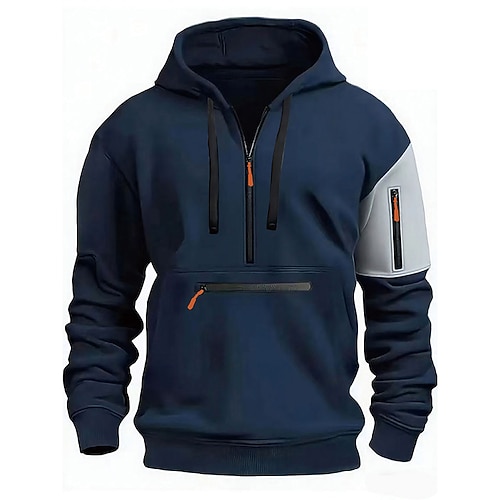 Per uomo Felpa con cappuccio Felpa con cappuccio e zip corta Felpa con cappuccio in pile Felpa con cappuccio tattica Nero Rosso Blu marino Cachi Con Cappuccio Semplice Patchwork Cerniera Blocco di