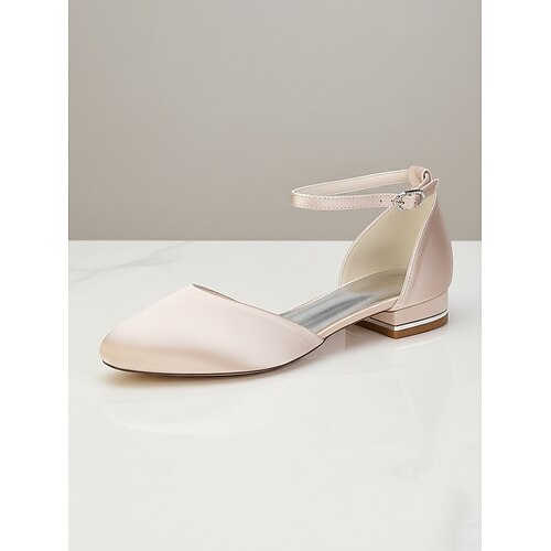 Eleganti décolleté da sposa in raso con dettagli in strass, da donna, con punta affilata, tacco basso e cinturino alla caviglia, disponibili in vari colori