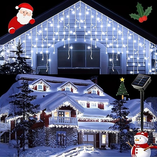 1pc Luce a Stringa a Ghiacciolo Solare LED 4M-96Leds 8 Modalità Luci a Tendina Icicle Impermeabili Luci a Stringa Fatata Tetto Decorazione di Strada Commerciale