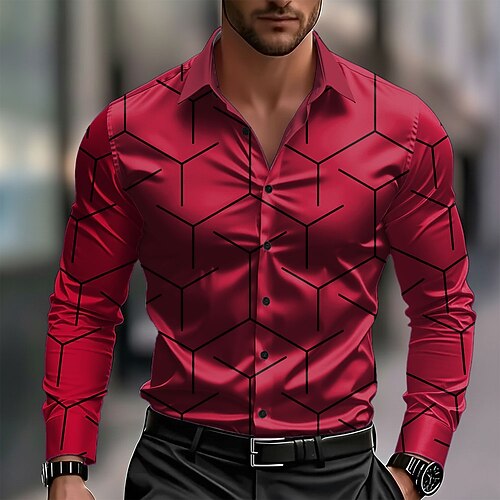 Per uomo Motivo Geometrico Linea Camicia Camicia in raso Camicia elegante Manica Lunga Business Casual Vacanza Abbigliamento Quotidiano Estate Primavera Autunno Collo ripiegato Stampa 3D Camicie con