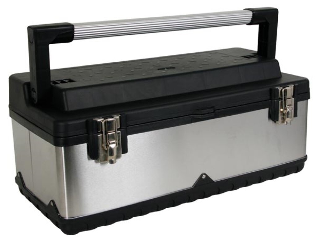 Perel Werkzeugkasten, Edelstahl, Aluminiumgriff, herausnehmbarer Werkzeugträger, Metallverschlüsse, 590 x 280 x 255 mm